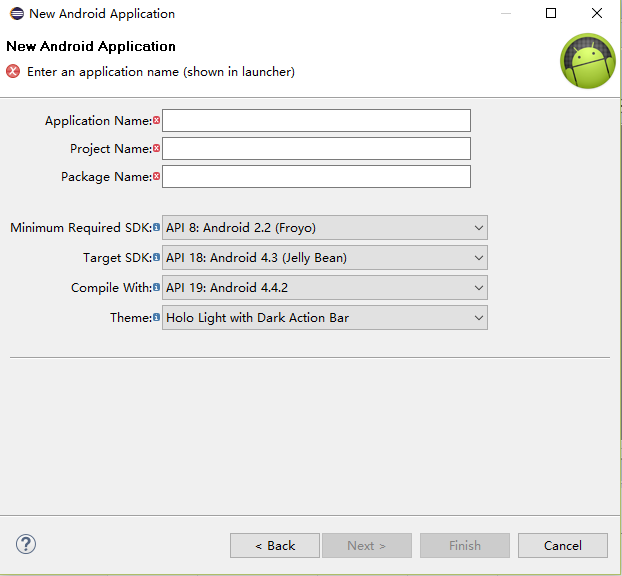 点击eclipse菜单File-New-Other…在弹出窗口点击Android选择Android Application Project,填写项目名称,然后一路Next最后点击Finish就完成了。